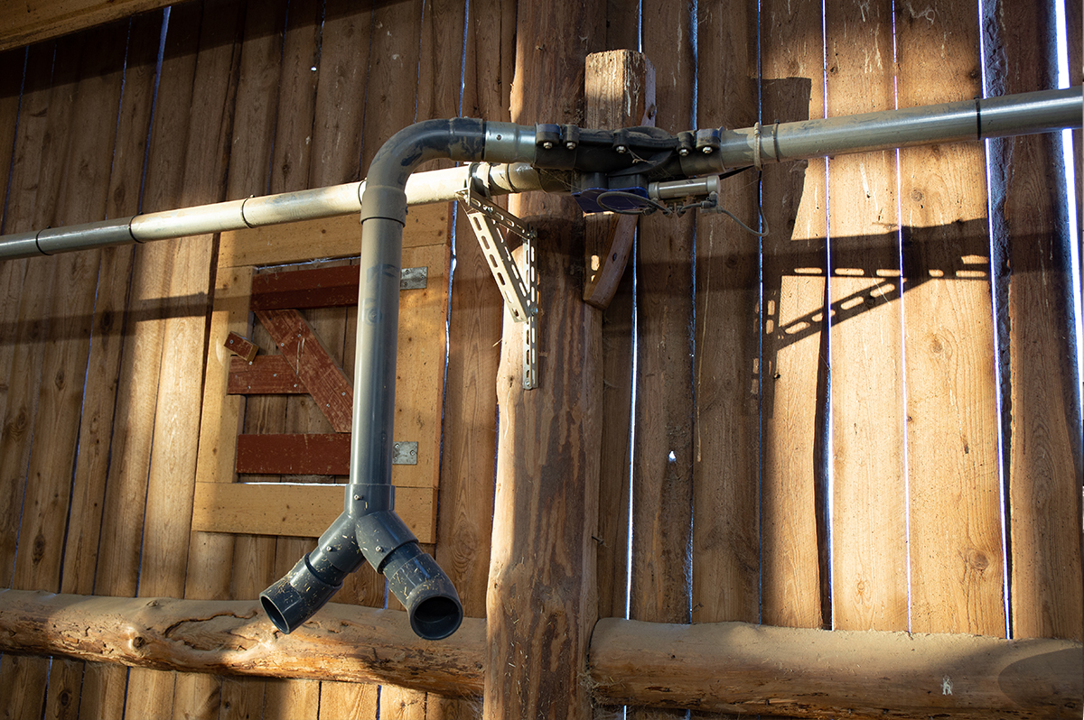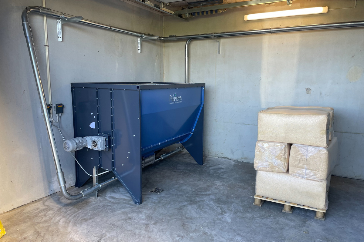 AirSys Welfare can handle different types of bedding, such as straw or sawdust. The system comes with a standard hopper for manual filling but can be expanded with a straw table, shredder, and chopper – allowing you to use your own straw bales efficiently.